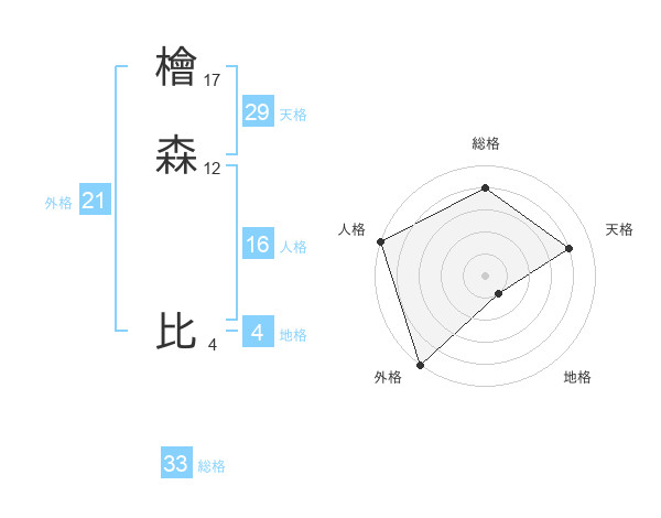 檜森 比さんの総格は33画の4点!