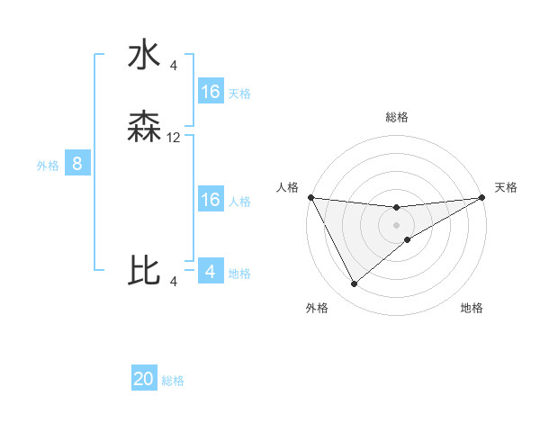 水森 比さんの外格は8画の4点!