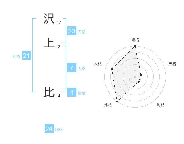 沢上 比さんの外格は21画の5点!