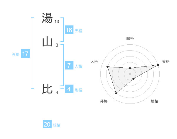 湯山 比さんの外格は17画の4点!