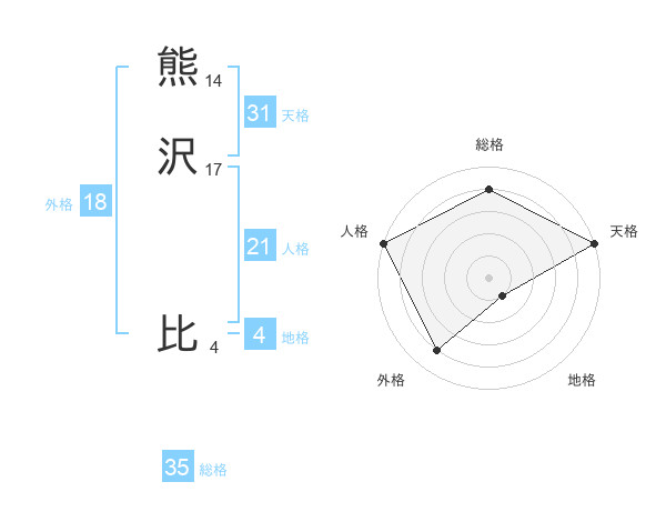 熊沢 比さんの天格は31画の5点!