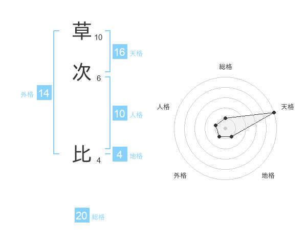 草次 比さんの総格は20画の1点!
