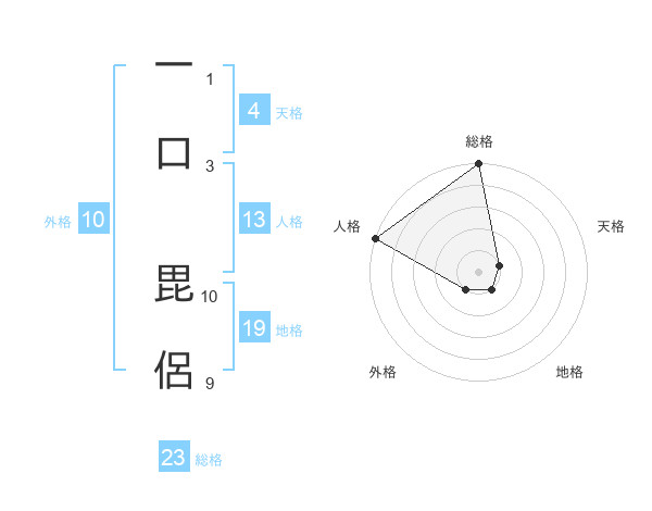 一口 毘侶さんの人格は13画の5点!