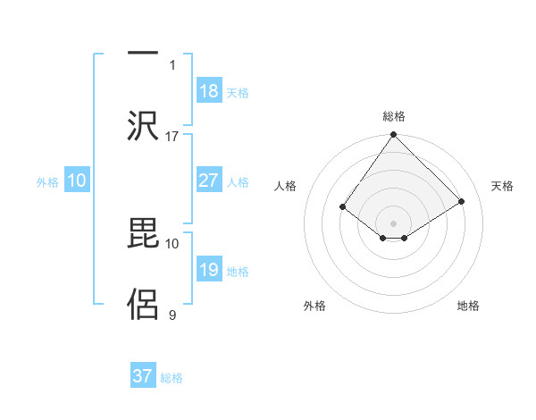 一沢 毘侶さんの総格は37画の5点!