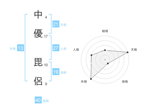 中優 毘侶さんを姓名の画数から五運を鑑定