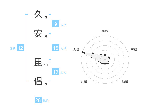 久安 毘侶さんの外格は12画の1点!