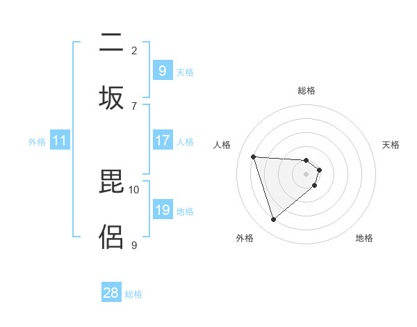 二坂 毘侶さんの総格は28画の1点!