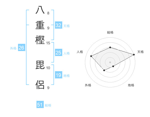 八重樫 毘侶さんを姓名の画数から五運を鑑定