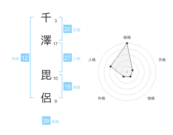 千澤 毘侶さんを姓名の画数から五運を鑑定