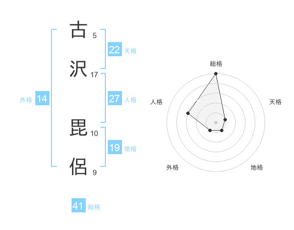古沢 毘侶さんの総格は41画の5点!