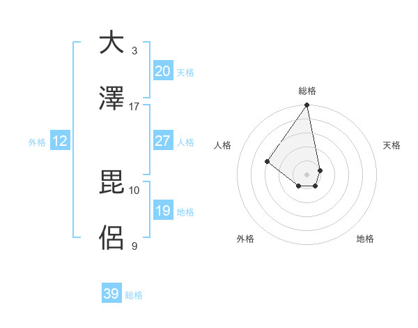 大澤 毘侶さんを姓名の画数から五運を鑑定