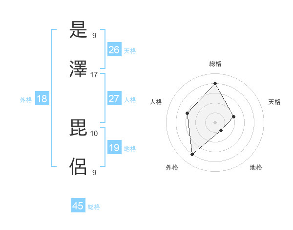 是澤 毘侶さんの総格は45画の4点!