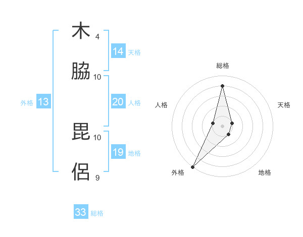 木脇 毘侶さんを姓名の画数から五運を鑑定