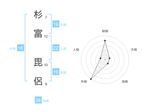 杉富 毘侶さんを姓名の画数から五運を鑑定