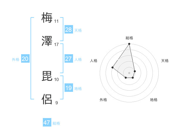 梅澤 毘侶さんの総格は47画の5点!