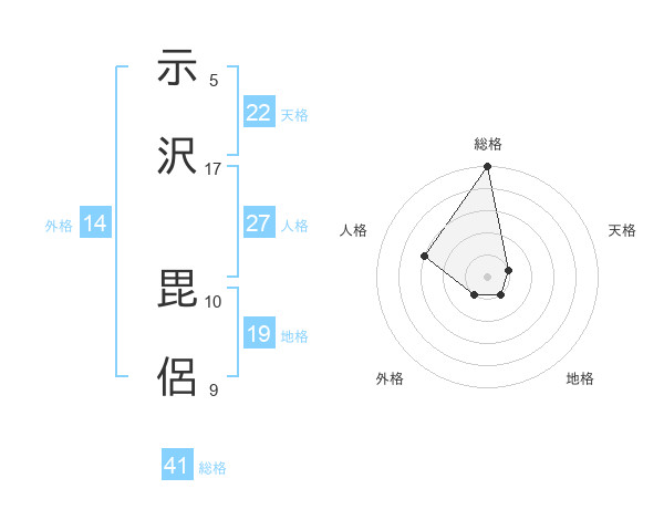 示沢 毘侶さんを姓名の画数から五運を鑑定