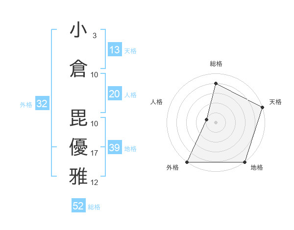 小倉 毘優雅さんを姓名の画数から五運を鑑定