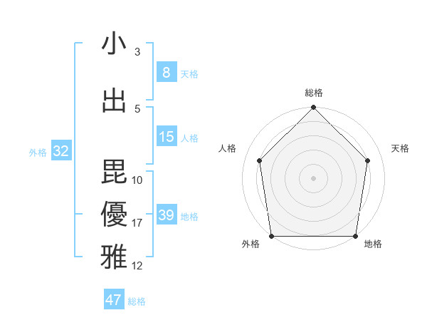 小出 毘優雅さんの総格は47画の5点!