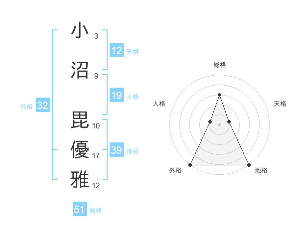 小沼 毘優雅さんの総格は51画の3点!