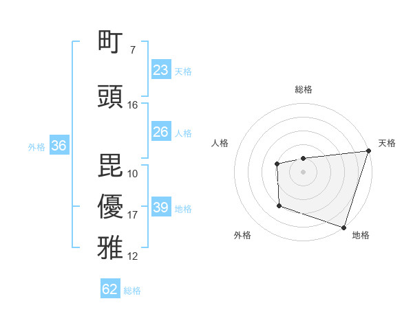 町頭 毘優雅さんを姓名の画数から五運を鑑定