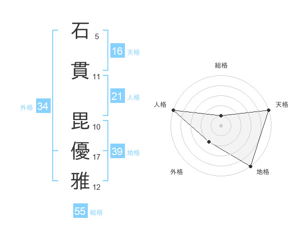 石貫 毘優雅さんを姓名の画数から五運を鑑定