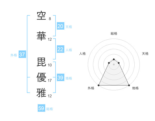 空華 毘優雅さんを姓名の画数から五運を鑑定