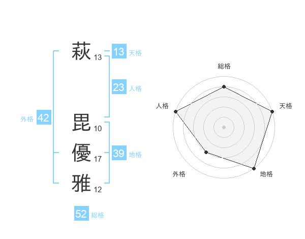 萩 毘優雅さんを姓名の画数から五運を鑑定
