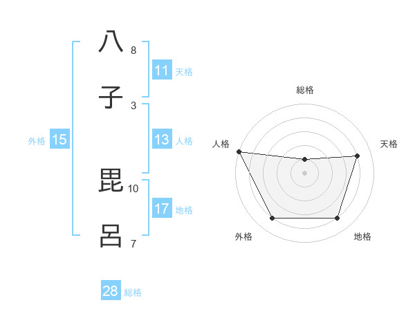 八子 毘呂さんを姓名の画数から五運を鑑定