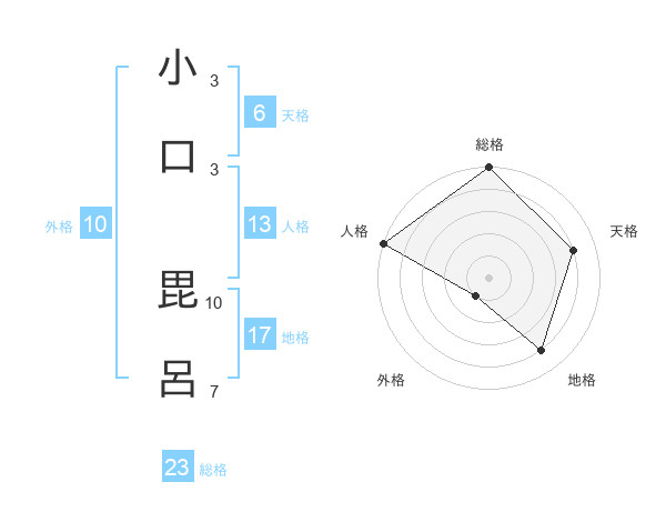 小口 毘呂さんの総格は23画の5点!