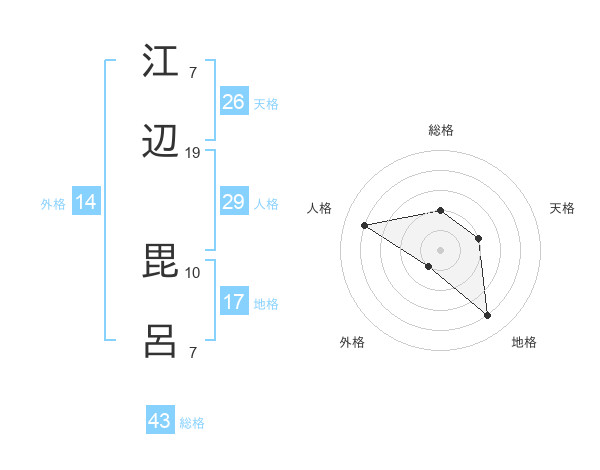 江辺 毘呂さんの総格は43画の2点!