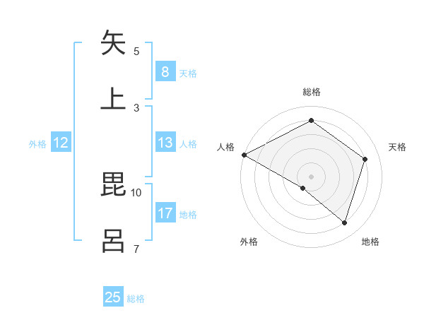矢上 毘呂さんを姓名の画数から五運を鑑定