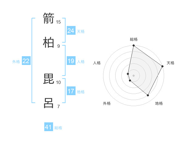 箭柏 毘呂さんの総格は41画の5点!