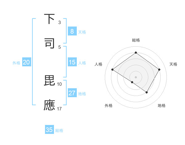 下司 毘應さんの外格は20画の1点!