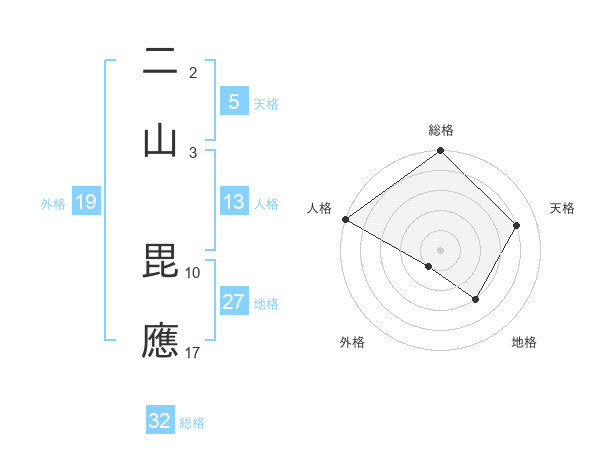 二山 毘應さんの総格は32画の5点!