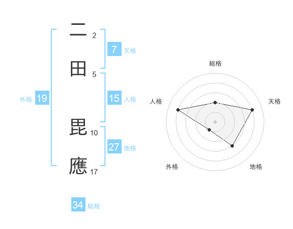 二田 毘應さんの総格は34画の2点!