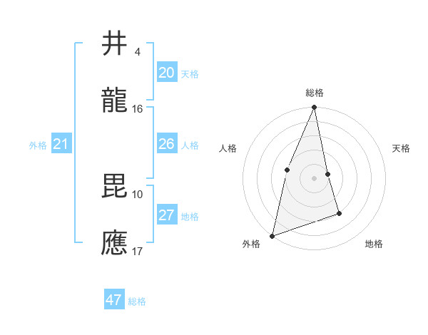 井龍 毘應さんを姓名の画数から五運を鑑定