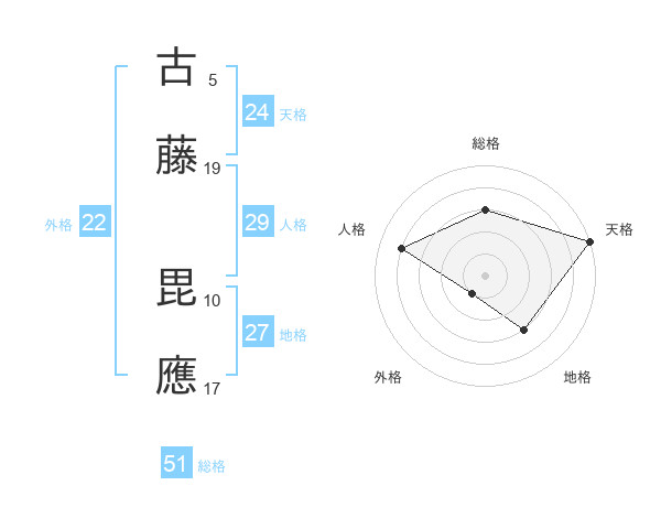 古藤 毘應さんの総格は51画の3点!