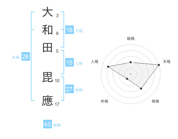 大和田 毘應さんの地格は27画の3点!