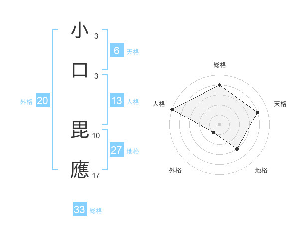 小口 毘應さんの総格は33画の4点!