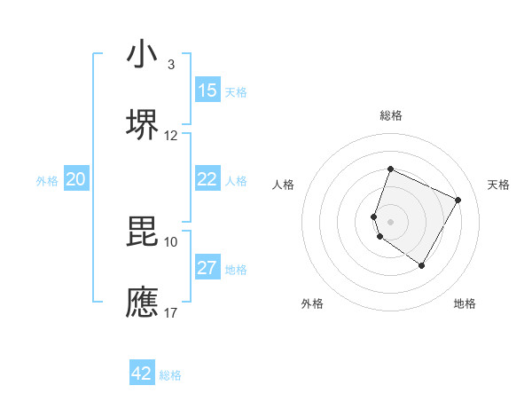 小堺 毘應さんを姓名の画数から五運を鑑定