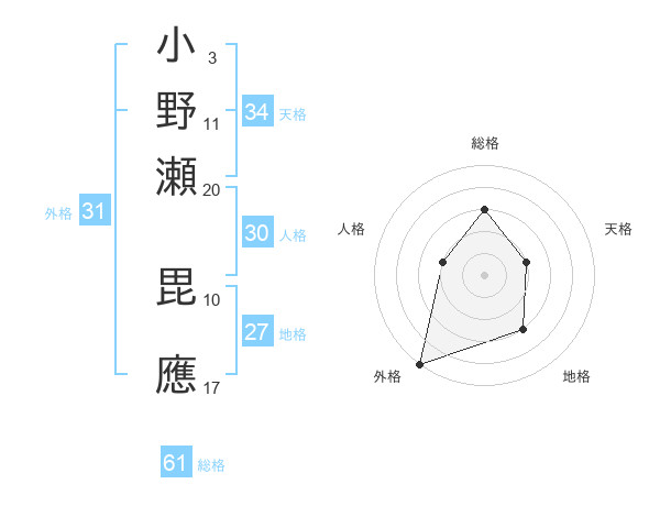 小野瀬 毘應さんの外格は31画の5点!
