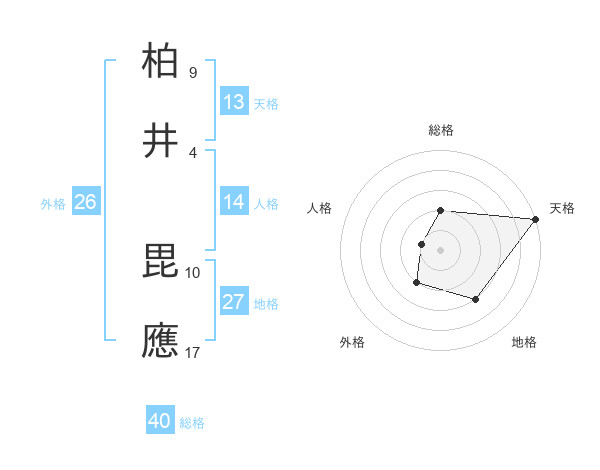 柏井 毘應さんの天格は13画の5点!