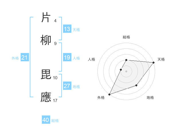 片柳 毘應さんの外格は21画の5点!