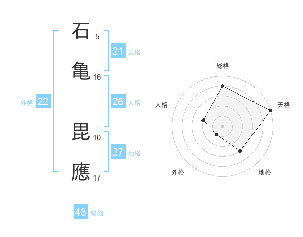 石亀 毘應さんの総格は48画の4点!