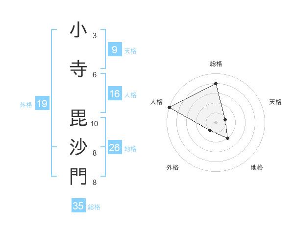小寺 毘沙門さんの地格は26画の2点
