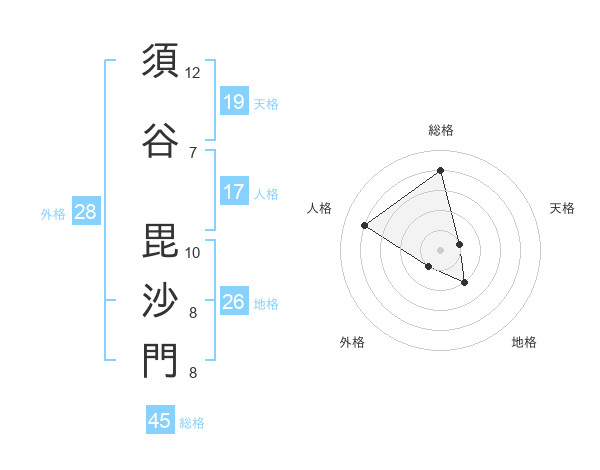 須谷 毘沙門さんを姓名の画数から五運を鑑定