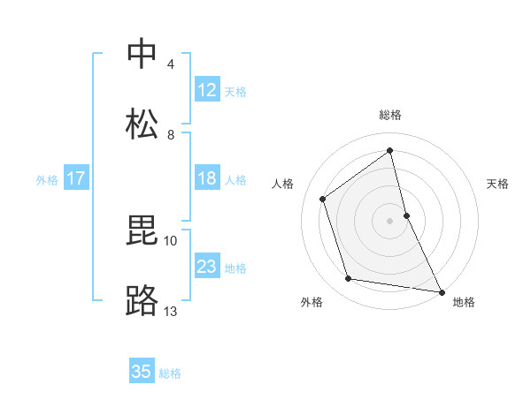 中松 毘路さんの天格は12画の1点!