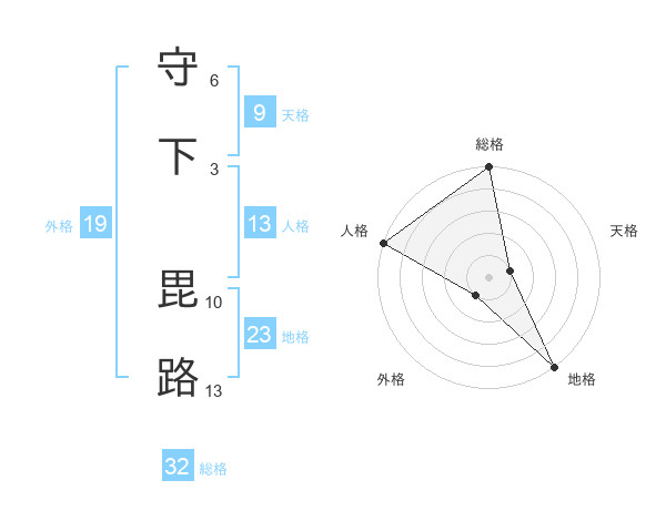 守下 毘路さんの総格は32画の5点!