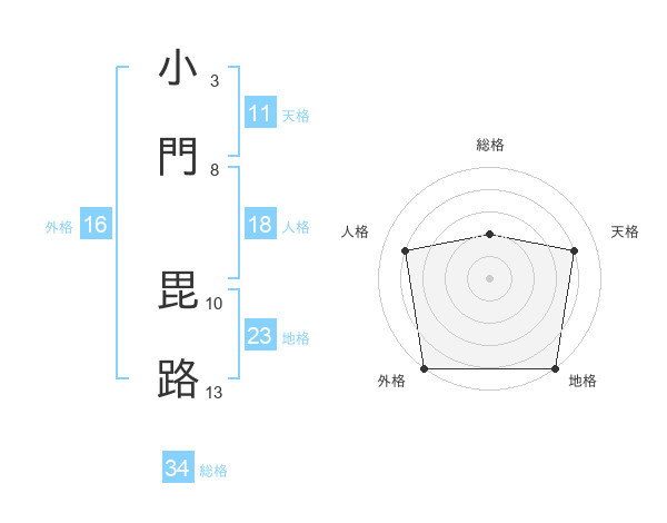小門 毘路さんの総格は34画の2点!