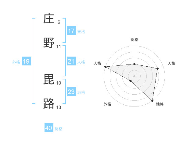 庄野 毘路さんの総格は40画の2点!